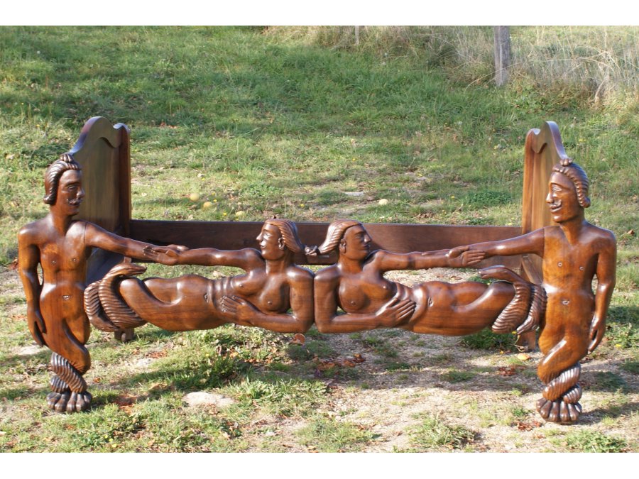Ce lit provient du petit musée du bizarre de Lavilledieu en Ardèche, il figurait parmi les pièces extraordinaires collectées par Serge Tekielski, dit Candide, qui avait fondé en 1971 un musée afin de présenter sa collection d'art insolite et populaire.