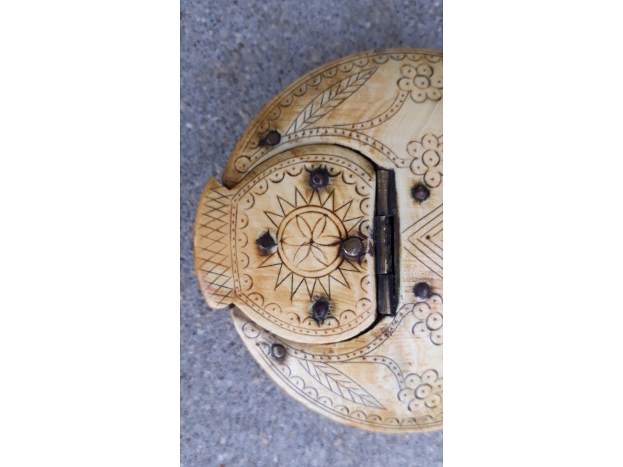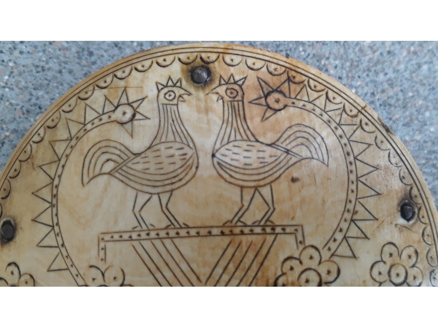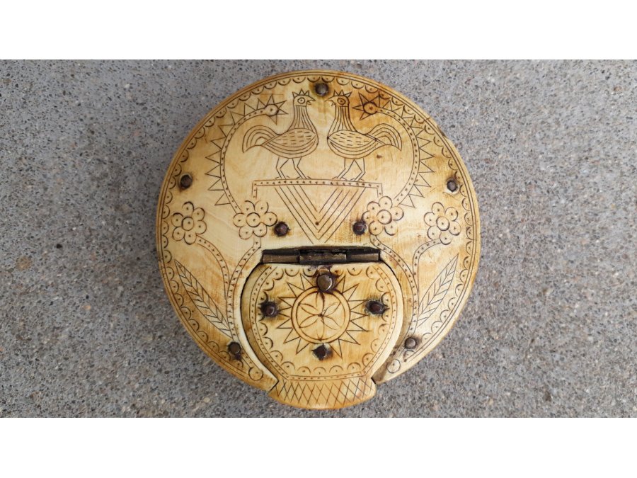Fines sculptures sur le couvercle figurant 2 coqs, porte-bonheur incarnant le courage. Un décor floral ainsi qu'une rosace finalisent l'ensemble.