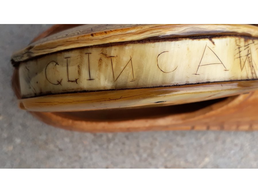 Quelques gravures de lettres complètent le pourtour de l'objet.