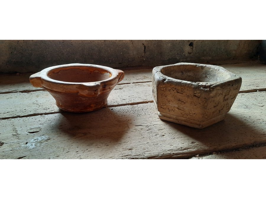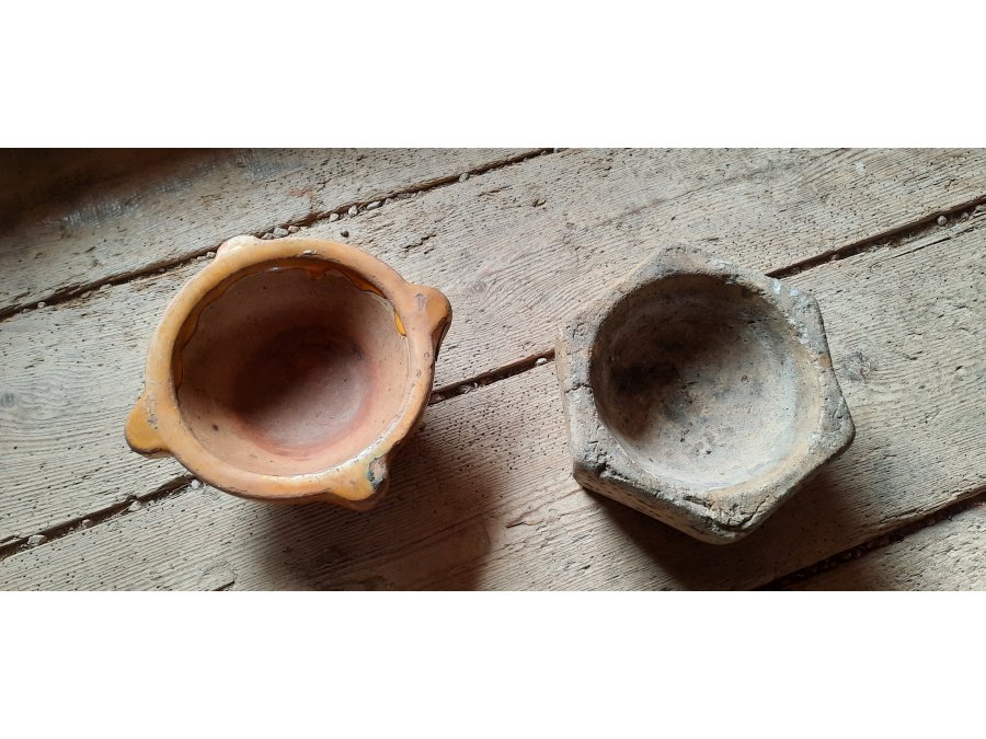 Mortiers en terre cuite qui appartenait jadis au quotidien de nos cuisines.
