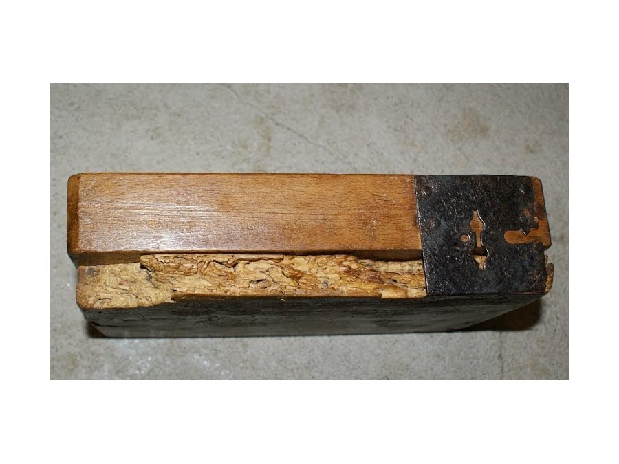 Dégradation par insectes xylophages essentiellement sur la partie inférieure