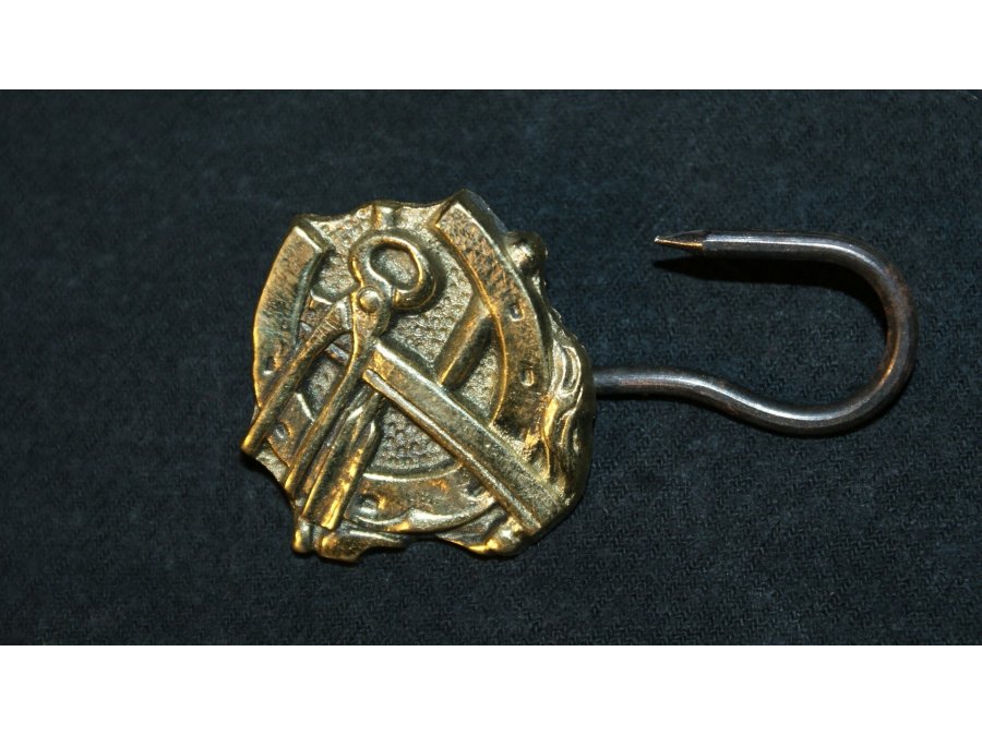 L’artisan s’en servait pour attacher son tablier. Il réunissait les deux liens, dont l’un était muni d’une boucle et grâce au crochet recourbé fixé sur l’autre patte, il maintenait son tablier (en tissu épais ou en cuir) serré autours de sa taille (source http://www.objetsdhier.com/)