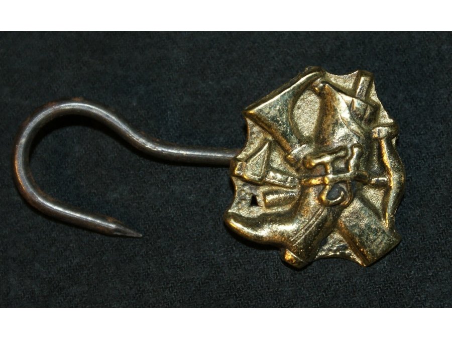 L’artisan s’en servait pour attacher son tablier. Il réunissait les deux liens, dont l’un était muni d’une boucle et grâce au crochet recourbé fixé sur l’autre patte, il maintenait son tablier (en tissu épais ou en cuir) serré autours de sa taille (source http://www.objetsdhier.com/)