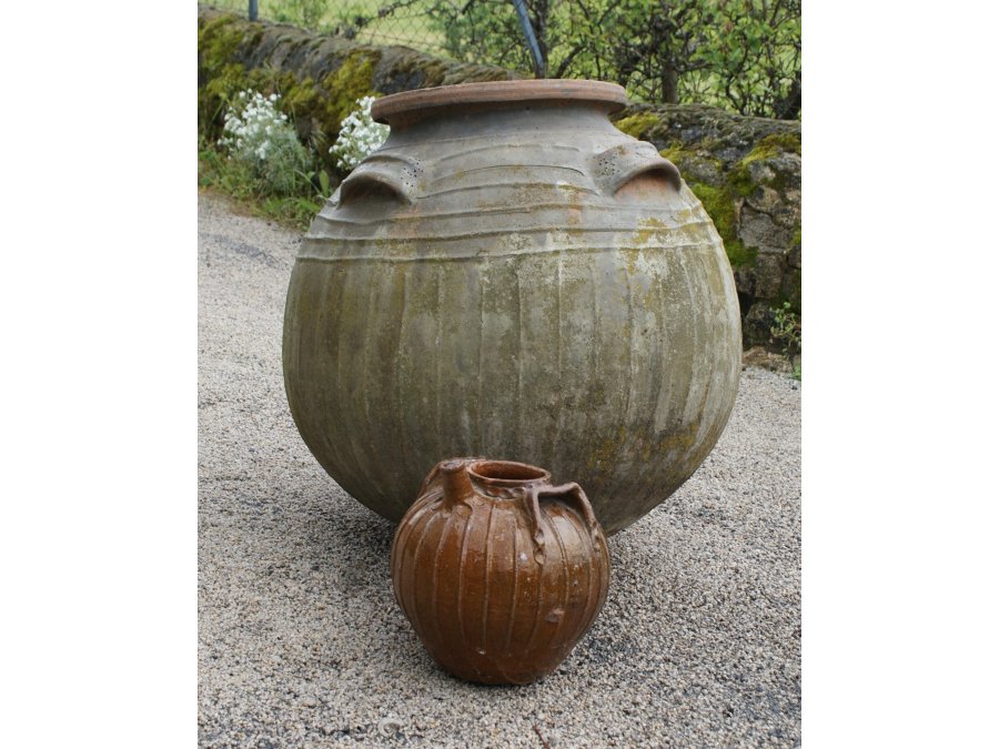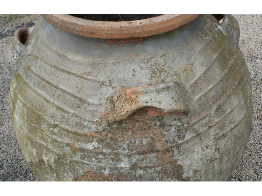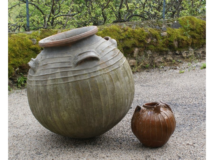 Grand mélard en terre en partie vernissée à émail vert, taille exceptionnelle.