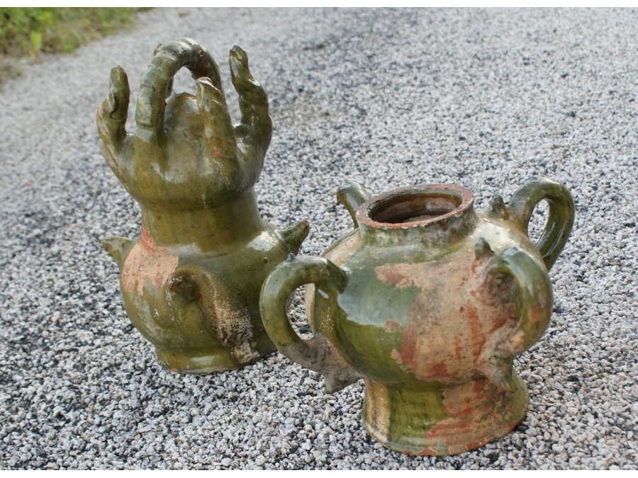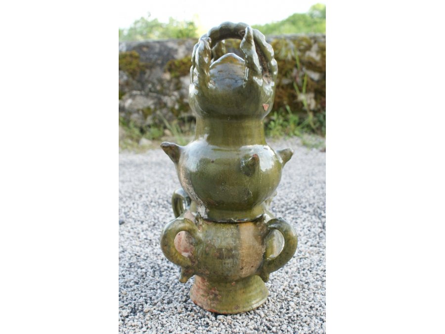 Epi de faîtage en terre vernissée vert, composé de deux parties