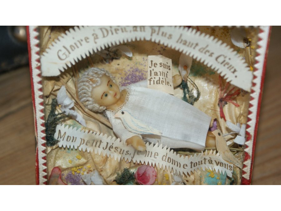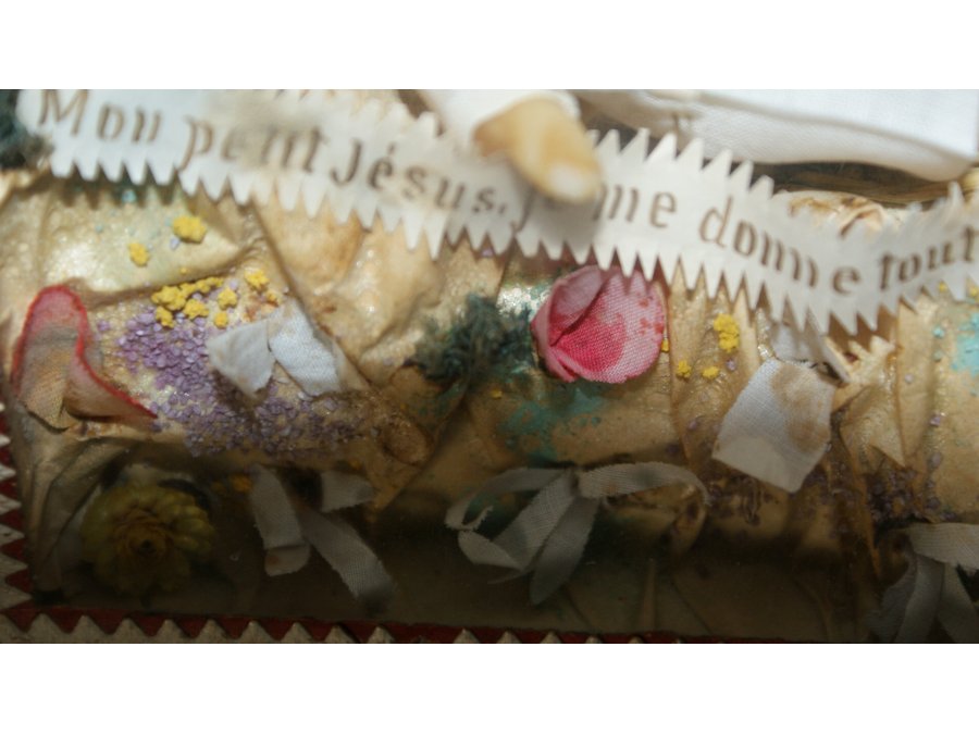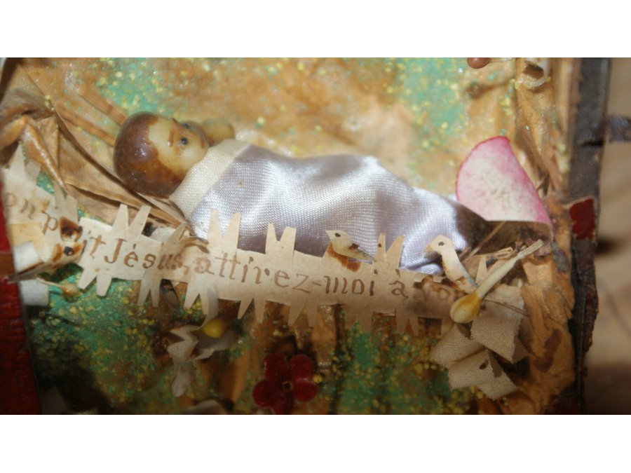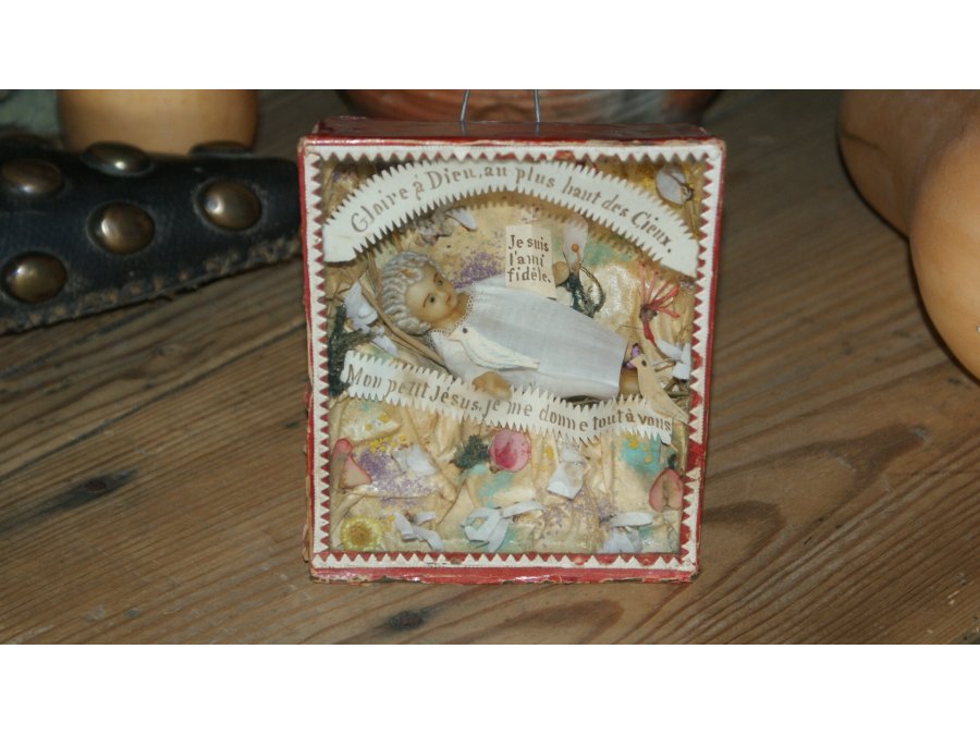 Ces petites boites étaient réalisées au XIXème par des religieuses cloîtrées, Carmélites, Clarisses ou Dominicaines, à l'intention des bienfaiteurs de leur communauté. Elles étaient également parfois réalisées par des béates.